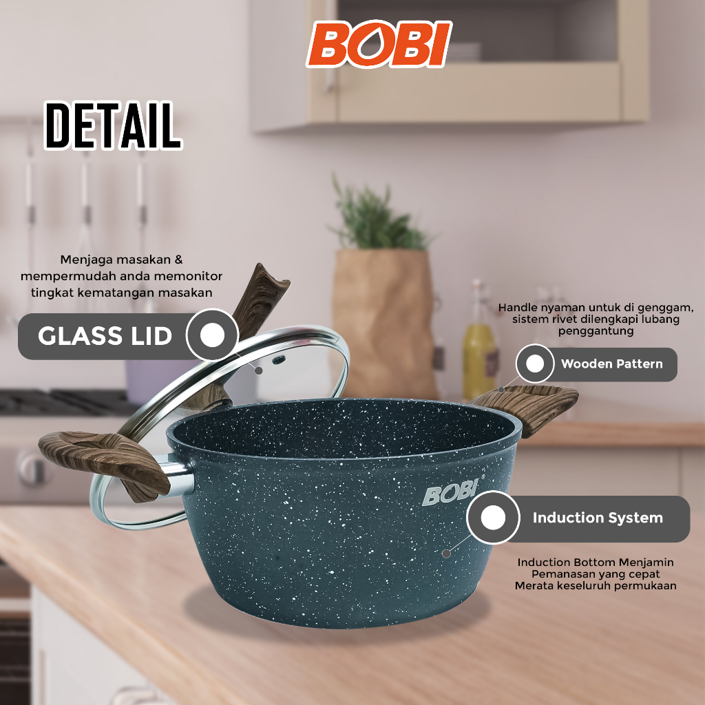 Detail Casserole Cookware 24cm kode BB-C-24 // Panci Anti Lengket Pan Kuah Masak Goreng BOBI - Warna Random