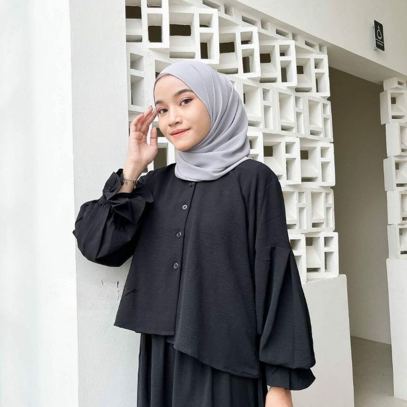 ONESET ROK Bahan : crincle airflow Warna : grey, salem,turkish,purple,nutela,mauve,hitam,coffe Ukuran : Atasan LD 110cm,PJ 60cm, PJ lengan 55cm L.ketiak 48cm Rok L.pinggang 50cm (bisa melar),PJ 95cm, L.bawah 180cm, Detail : atasan berkerah, kancing depan (busui friendly), lengan balon terompet Rok pinggang karet
