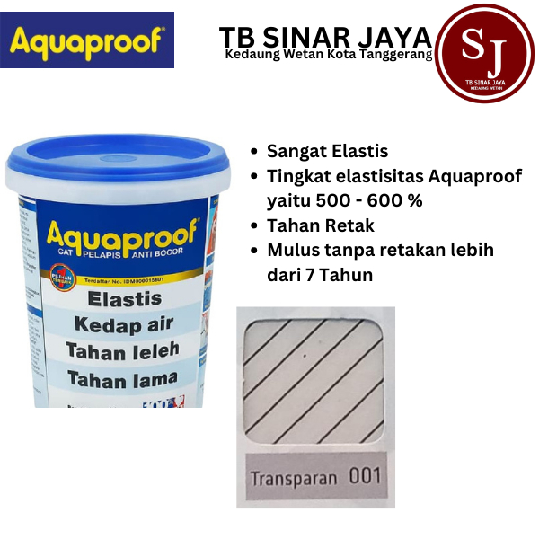Perlengkapan Rumah > Renovasi Rumah > Alat Pemeliharaan Rumah Lainnya > Cat Aquaproof Cat Pelapis Anti Bocor Kemasan 4kg - 001 Transparan