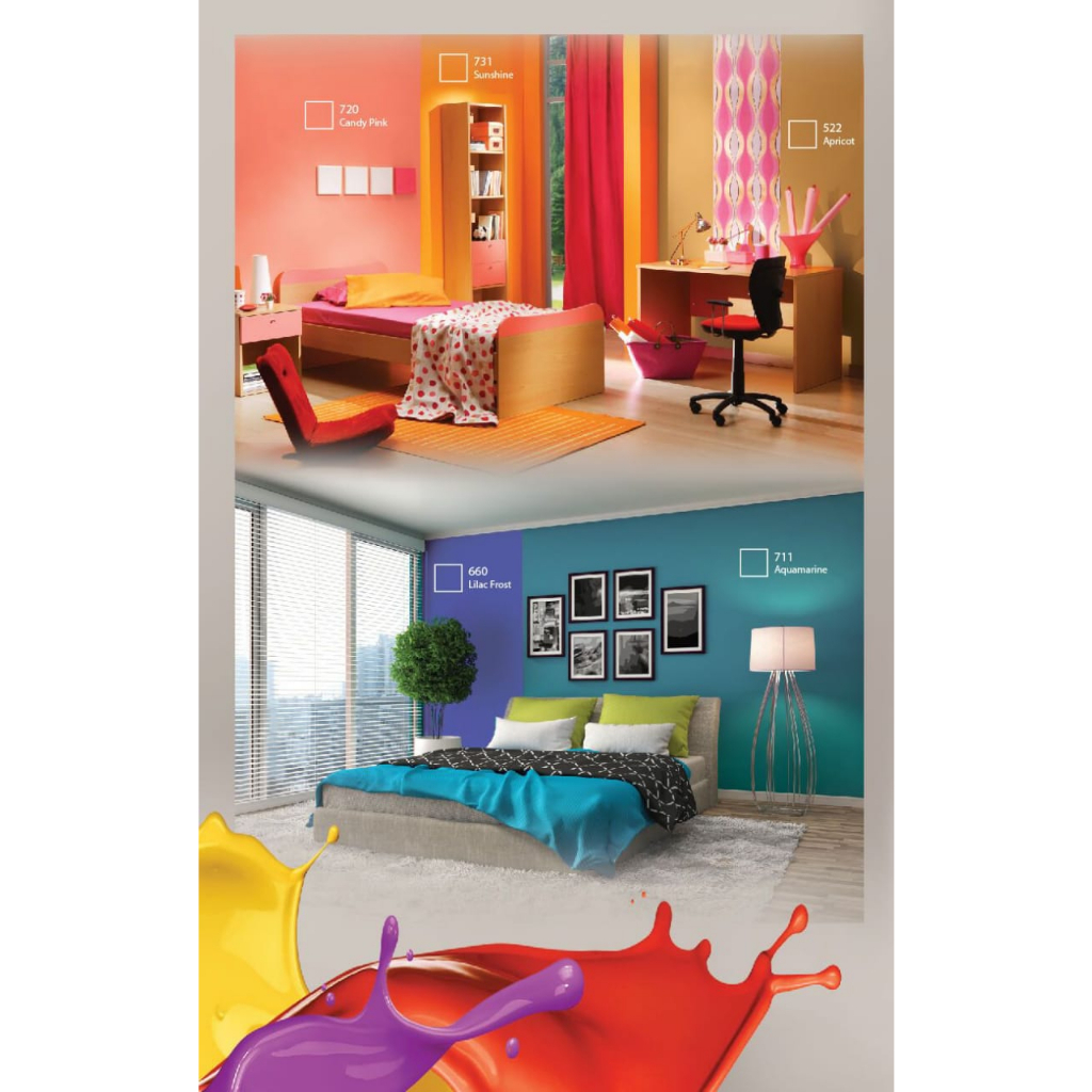 KEGUNAAN DAN KEISTIMEWAAN ✓ Resin terbaik ✓ Pigmen pilihan ✓ Tanpa merkuri & timbal ✓ Daya tutup terbaik ✓ Anti jamur ✓ Cepat kering ✓ Warna tidak mudah pudar ✓ Mudah diaplikasikan DATA TEKNIS ✓ Penampilan : matt/tidak kilap ✓ Warna : lihat kartu warna ✓ Kekentalan (temp 30°C) : 105 - 110 ku ✓ Berat Jenis (temp 30°C) : 1.4 - 1.6 kg/lt, tergantung warna ✓ Kadar Padat : 50 - 60% ✓ Pengencer : Air bersih ✓ Ketebalan Film Kering : ± 60 micron ✓ Waktu Kering - Kering sentuh : 30 menit, tergantung sirkulasi , suhu dan kelembaban udara - Kering sempurna : 8 - 12 jam ✓ Tenggang waktu antar lapisan : minimal 2 jam berdasarkan kondisi normal ✓ Cara Aplikasi : kuas, roll, spray ✓ Daya Sebar Teoritis : 10 - 12 m2 /kg, tergantung dari absorpsi dan pori – pori permukaan