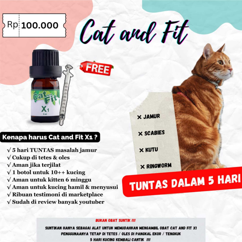 .Cat & Fit X1 1 botol bisa sampai 15 kucing cocok untuk yang punya kucing banyak atau suka street feeding ❤ . - Satu produk dapat mengobati scabies, kutu, jamur, dan parasit lainnya.Tidak hanya kucing, tapi dapat juga anjing kelinci dengan menyesuaikan berat badan, minimal usia 6 minggu . - cara pemakaian : teteskan di tengkuk yg kering, kalau mau mandi harus 2 hari sebelumnya ya, atau 2-3 jam setelah mandi, tunggu sampai benar benar kering agar tidak terjilat ya . - penyembuhan : pakai 2 minggu sekali, dapat dihentikan jika sudah sembuh, dapat dibarengi dengan salep /spray kulit, untuk pengobatan jamur, ditetes ditempat yg ada jamur dan diusap2 . - untuk pencegahan dapat digunakan 1 bulan sekali ya - dosis : dibawah 2kg sampai 2kg berikan 1 tetes 2kg - 4kg berikan 2 tetes 4kg - 6kg berikan 3 tetes 6kg - 8kg berikan 4 tetes 8kg - 10kg berikan 5 tetes (1 botol bisa sampai 15 tetes ) 1 tetes setara 0,1ml . Kandungan : Hexachloroxyo + selakmetin + extract daun sereh + lavender oil + zaitun oil .