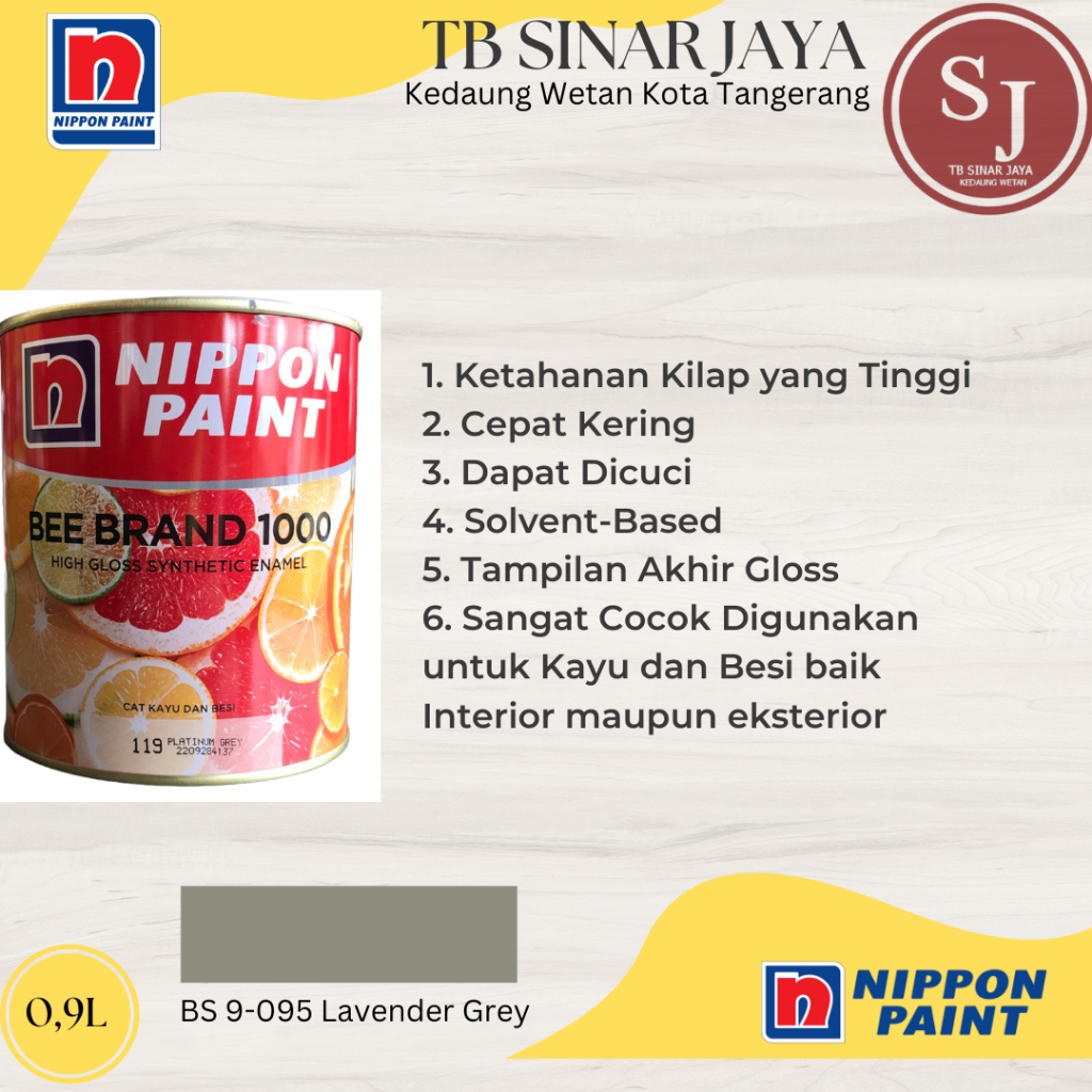 Cat Kayu dan Besi BEE BRAND 1000 Nippon Paint 0.9L - BS 9-095 Lavender GreyCat Kayu dan Besi BEE BRAND 1000 Nippon Paint 0.9L - BS 9-095 Lavender GreyCat Kayu dan Besi BEE BRAND 1000 Nippon Paint 0.9L - BS 9-095 Lavender GreyCat Kayu dan Besi BEE BRAND 1000 Nippon Paint 0.9L - BS 9-095 Lavender Grey
