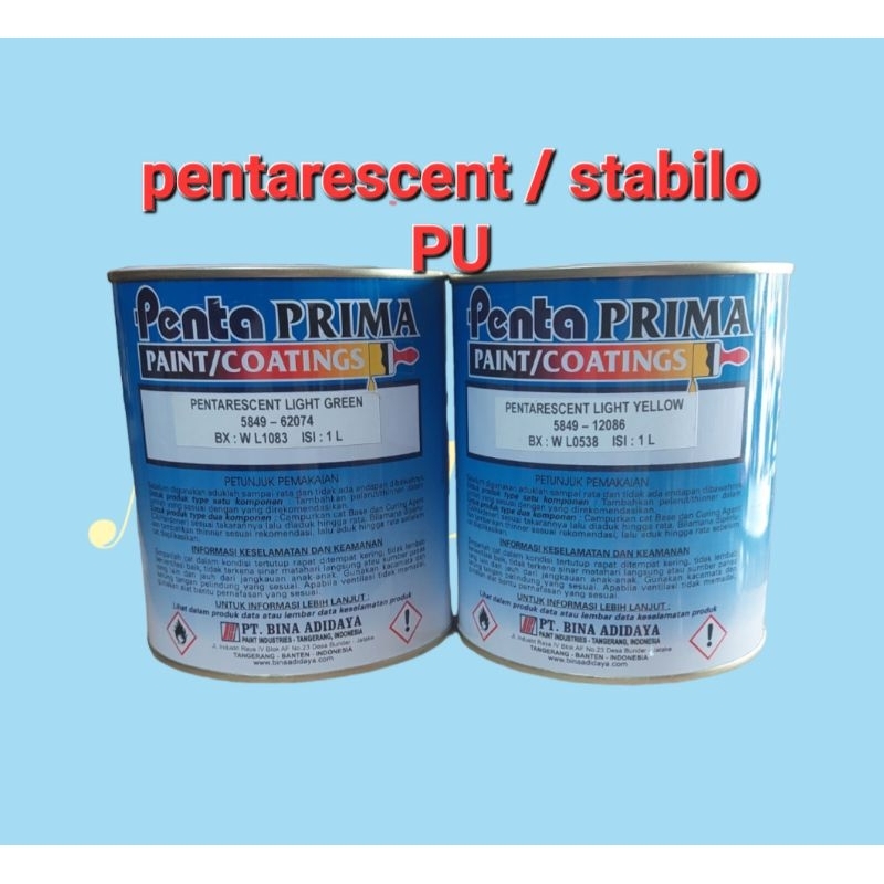 Otomotif > Otomotif Lainnya > CAT PENTA RESCENT / WARNA STABILO PU LIGHT YELLOW - GREEN - KUNING & HIJAU - 1 LITER - CAT PU OTOMOTIF