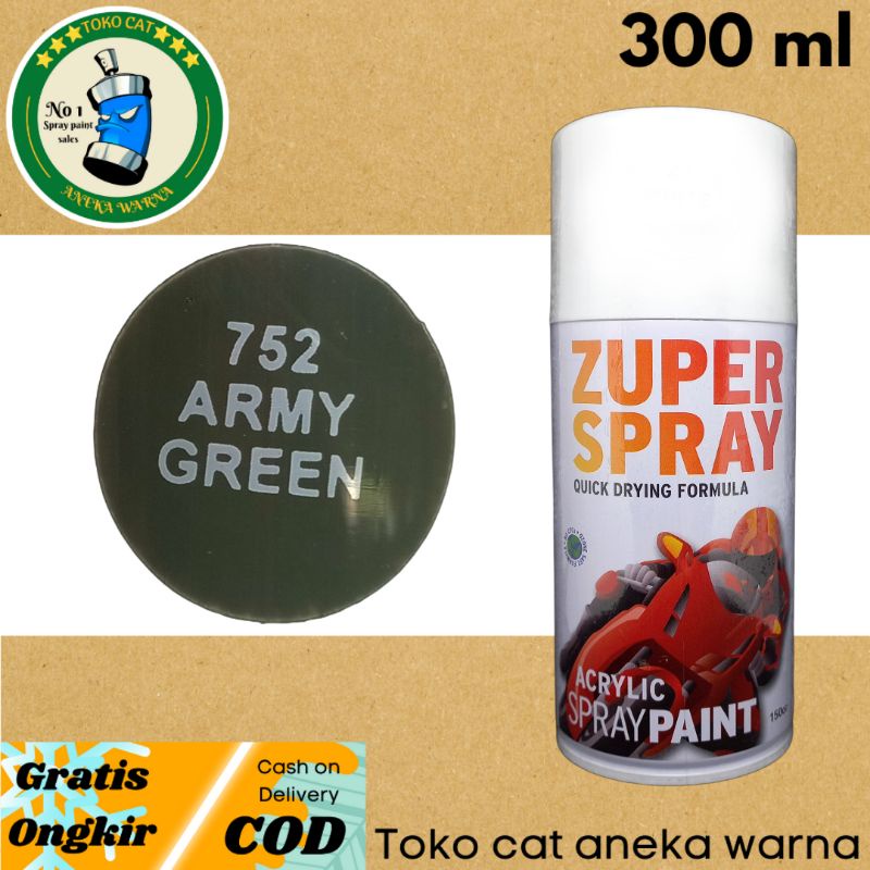 Otomotif > Perawatan Kendaraan > Poles, Coating, & Sealant Mobil > cat semprot 300cc army green hijau tentara zuper spray produk dari rj london spray paint pilok pilox