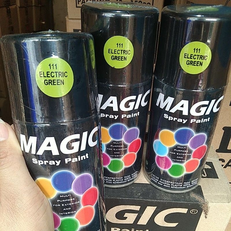 Detail cat semprot pilok pilox magic spray paint 300cc magic electric green 111 hijau muda hijau terang hijau elektrik 300cc