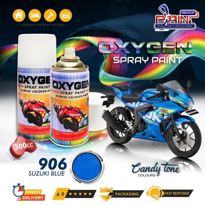 Detail Cat Semprot / Pylox OXYGEN Acrylic Spray Paint - 906 Candy Tone Suzuki Blue