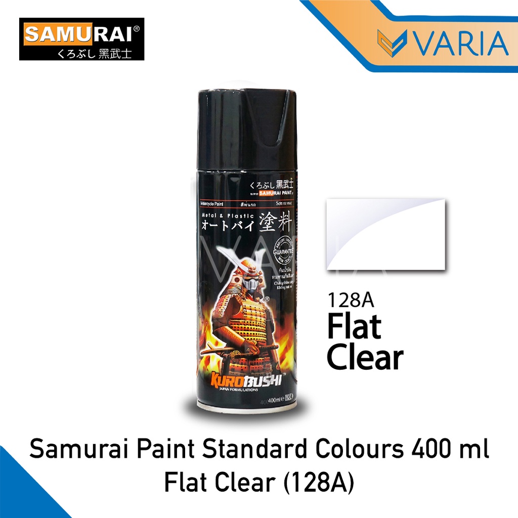 Warna: Flat Clear (Doff) Kode Warna: 128A Isi: 400 ml Aplikasi: Metal dan Plastik Jarak Semprot: 8-15 cm