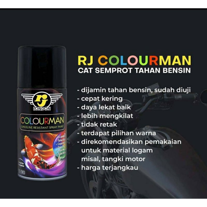 Otomotif > Perawatan Kendaraan > Poles, Coating, & Sealant Mobil > CAT SEMPROT RJ LONDON DAN COLOURMAN 300ml SEMUA WARNA PILOX PILOK hitam black putih white clear red merah blue biru yellow kuning orange bronze green candytone candy tone brown gloss glossy metallic metalik flat doff matte
