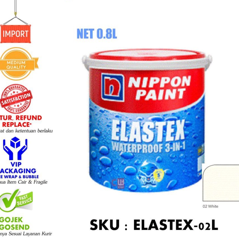 Deskripsi Produk ELASTEX WATERPROOF 3-in-1 adalah cat pelapis anti-bocor dengan perlindungan 5 tahun anti-bocor, berbahan dasar latex elastomerik akrilik yang sangat tangguh untuk mencegah kebocoran air, menutup retak rambut dan dapat pula berfungsi sebagai cat dasar yang unggul. Cat ini memiliki sifat kedap air, elastis, tahan retak, anti-alkali, anti-jamur, daya rekat yang kuat dan anti-lumer/leleh. Kini telah tersedia dengan lebih dari 2000 warna pilihan.