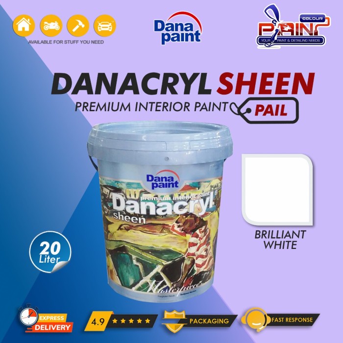 Cat tembok Premium Danacryl Sheen adalah cat interior yang berkualitas tinggi dengan hasil akhir halus dan semi mengkilap. Kualitas warnanya memberikan kesan mewah dan tidak cepat pudar. Danacryl sheen berbahan dasar air, memiliki daya tutup sangat baik dan daya sebar lebih luas juga mudah dibersihkan dengan air.