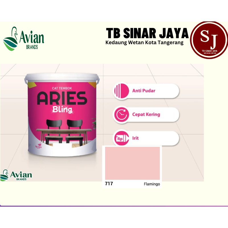 Perlengkapan Rumah > Renovasi Rumah > Cat & Pelapis Dinding > Cat Tembok Interior ARIES BLING Avian Kemasan 5kg - 717 FLAMINGO