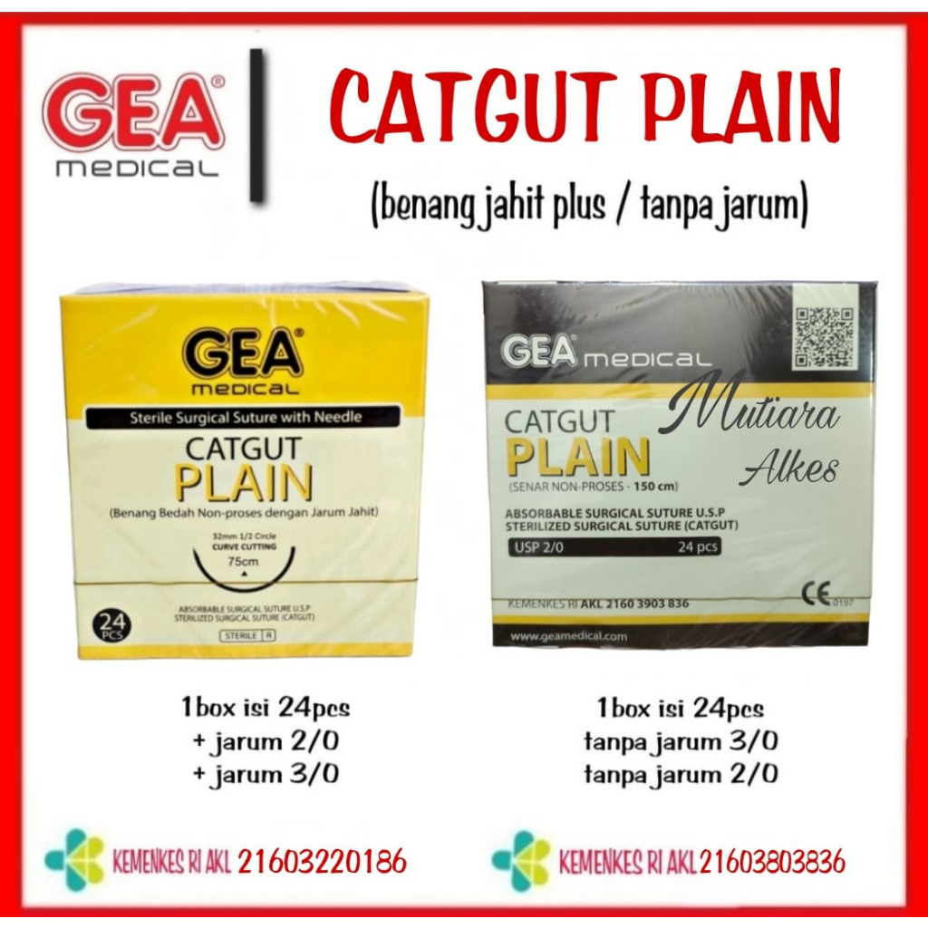 * Merk : GEA Medical * Panjang : 75cm, 32mm 1/2 circle CURVE CUTTING * Harga : 1 box isi 24 sachet * Benang Plain dikemas dengan 89% Isopropanol, 10% air dan 1% larutan Triethanolamine * Diindikasikan untuk digunakan dalam jaringan lunak atau litigasi umum, termasuk penggunaan operasi mata, tetapi disarankan untuk penggunaan pada bedah kardiovaskular atau neurologi * Kemasan steril