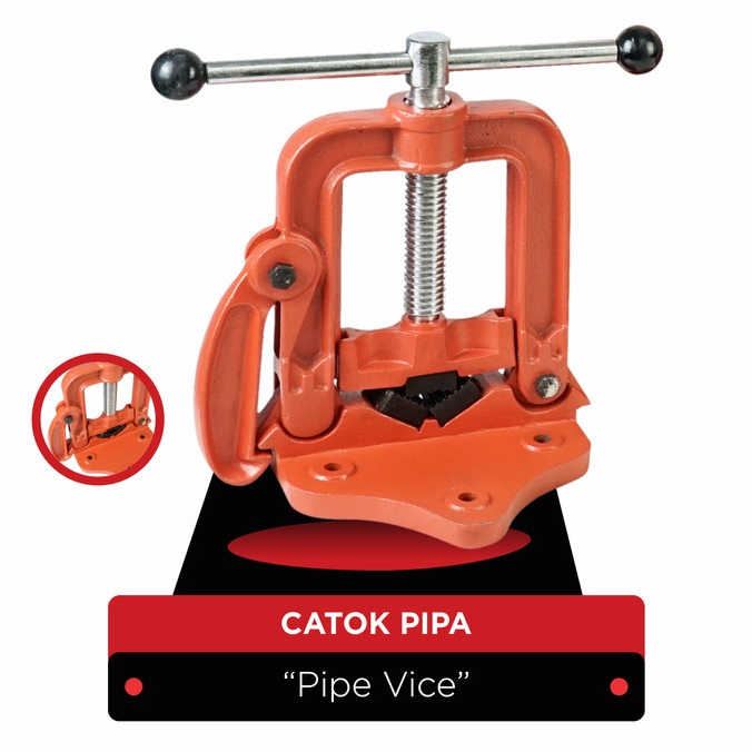CP Pipe Vise #2 adalah alat untuk menjepit pipa dengan kuat dan kokoh yang digunakan untuk proses pemotongan atau pemasangan dengan pipa lain. Alat ini berfungsi untuk menahan pipa agar tidak goyang/bergeser saat pemotongan berlangsung. Dilengkapi dengan penampang khusus untuk menempatkan pipa, dan besi pengencang dengan sistem ulir. Alat ini dapat difungsikan untuk pipa dengan diameter 1/8 - 3".
