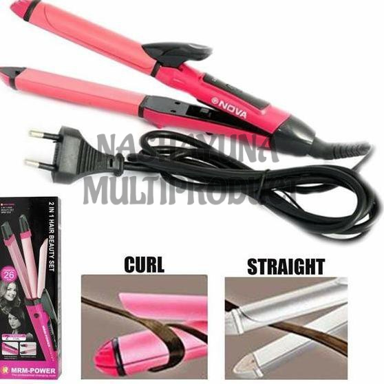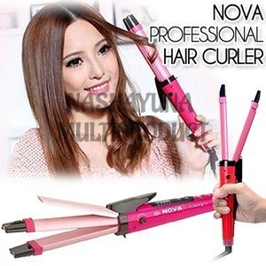 ** NOVA 2 in 1 hair beauty set **~ * bisa lurus dan keriting besar * plat terbuat dari nano ceramic * panjang 35 cm ; diameter plat 2,6cm * 5 level temperatur panas (120-200 derajat C) * tombol on/off * putaran kabel dapat berputar sampai 360 derajat * power 45watt ; 220-240v * high quality, recommended bangett