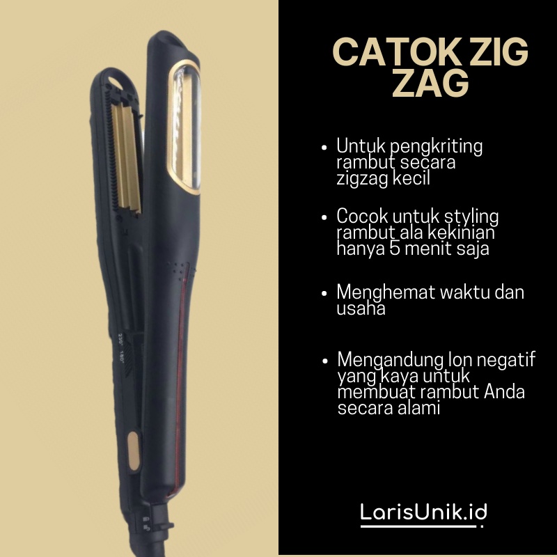 Apa KELEBIHAN Catok Keriting Rambut Zigzag Genteng? ✅Perawatan seperti dari salon, dimanapun dan kapanpun ✅Hemat waktu dan biaya ✅Dilengkapi keramik turmalin yang dapat memancarkan ion ✅Bahan yang kuat dan kokoh ✅Ukurannya pas ditangan mudah saat digunakan ✅Fiturnya elegan sangat cocok sebagai hadiah ✅360 derajat Swivel Cord ✅Terdapat 2 tingkatan panas, 180 derajat dan 230 derajat