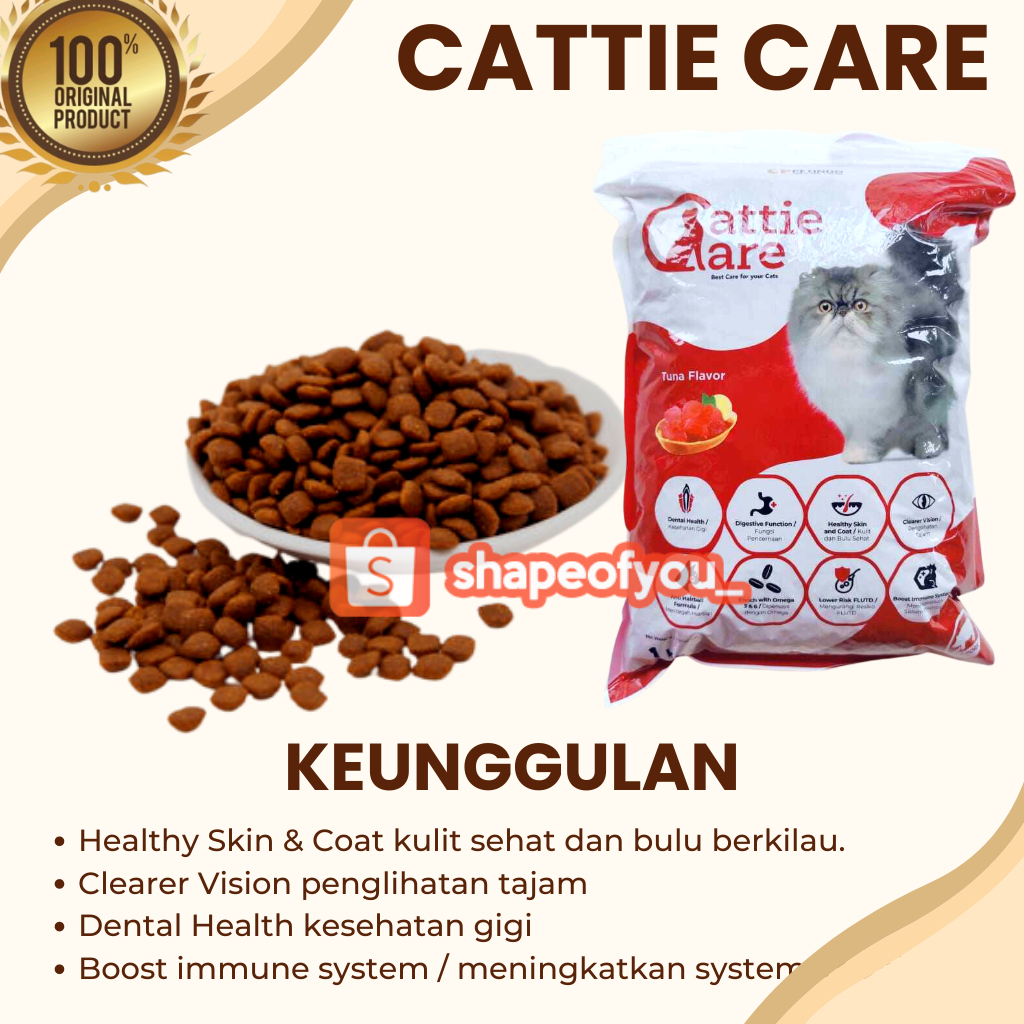 Cattie Care Tuna Dry Cat Food Adult Pakan Kucing . CATTIE CARE Diformulasikan Untuk Memenuhi Standar Profil Makanan Kucing Yg Disahkan Oleh AAFCO (Association Of American Feed Control Officials). CATTIE CARE Mengandung Nutrisi Lengkap, VItamin Dan Mineral Yg Membuat Kucing Anda Sehat. Dikembangkan Dengan Pola Diet Yg Seimbang Untuk Memastikan Kesehatan Kucing Yg Optimal. CATTIE CARE Cocok Untuk Semua Kucing