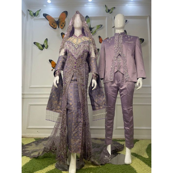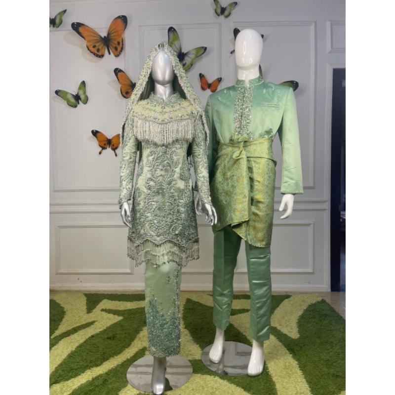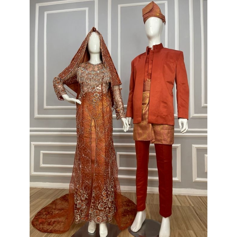 Detail Cauple koto gadang premium berekor full payet/kebaya akad plus jarik super mewah| kebaya modern