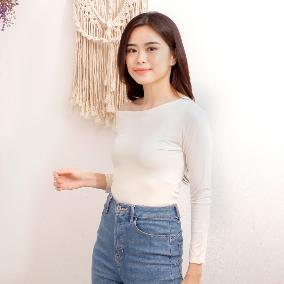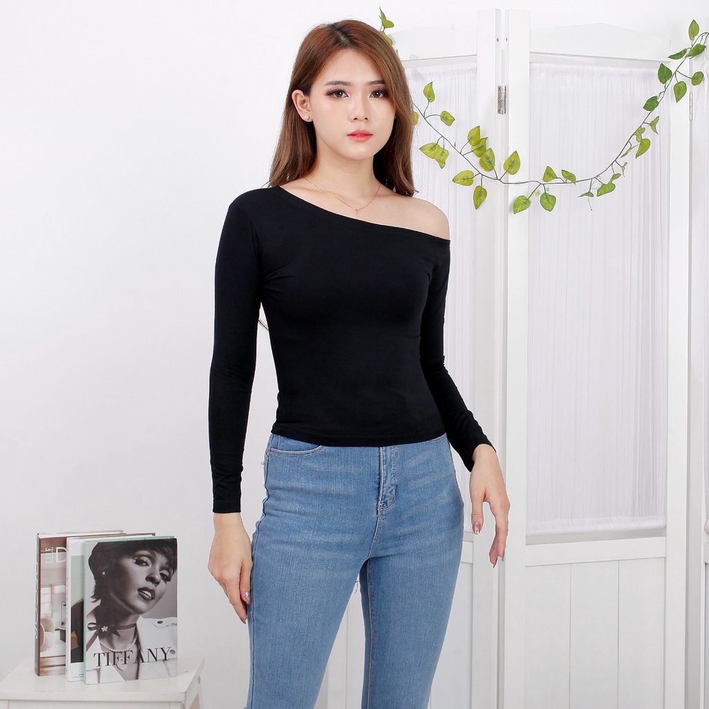 Detail CAVALU One Shoulder Top Longsleeve Baju Lengan Panjang Korean Style 081