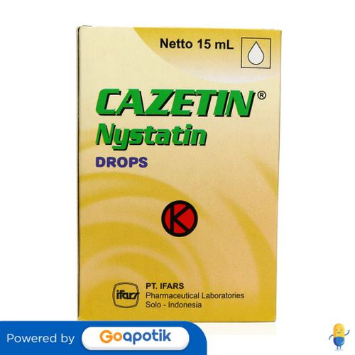 Deskripsi : PENGGUNAAN OBAT INI HARUS SESUAI PETUNJUK DOKTER.Untuk pengobatan kandidiasis rongga mulut dan saluran pencernaan | Komposisi : Tiap tetes Mengandung Nystatin 100.000 IU | Dosis : ATURAN PAKAI HARUS SESUAI DENGAN PETUNJUK DOKTER.Dewasa : 1-2 mL, 4 kali sehari. Bayi dan anak : 1 mL 3-4 kali sehari. Profilaksis 1 mL 1 kali sehari | Indikasi : Untuk pengobatan kandidiasis rongga mulut dan saluran pencernaan | Perhatian Khusus : Berhentimenggunakan nistatin jika pasien hamil atau menyusui, Konsultasikan dengan dokter anda sebelum mengambil nistatin jika pasien yang menderita infeksi jamur di paru - paru dan kulit, Lanjutkan nistatin diresepkan dosis oleh dokter. | Kemasan : Botol 15 mL suspensi | NIE : DKL0409214736A1