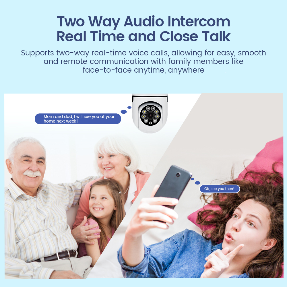 Fitur: 1. Interkom suara: mendukung interkom real-time suara dua arah 2. Pemantauan aplikasi telepon: mendukung tampilan jarak jauh gambar real-time pada aplikasi telepon 3. Deteksi dan alarm: alarm tepat waktu jika ada kelainan 4. Panorama 360°: pemantauan panorama tanpa titik buta 5. Layar penuh warna: layar penuh warna dengan pencahayaan 6. Kualitas HD: kualitas 1080P, tampilan HD 7. Deteksi gerakan: pelacakan cerdas gerakan kepala manusia 8. Tampilan multi-pemain: mendukung tampilan online multi-pemain 9. Pemantauan setelah pemutusan jaringan: pantau bahkan ketika jaringan terputus 10. Pemutaran HD: melihat pemutaran kapan saja 11. Berbagai penyimpanan: beberapa penyimpanan video 12. Perlindungan terenkripsi: lebih aman