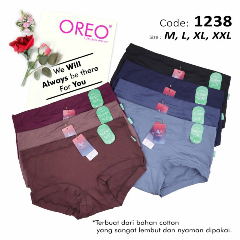 Celana Dalam Wanita Merk Oreo kode 1238 Bahan Polyester Spandex Katun yang berkualitas tinggi. Adem Lembut dan Menyerap Keringat. Sangat nyaman digunakan dalam aktivitas sehari hari.