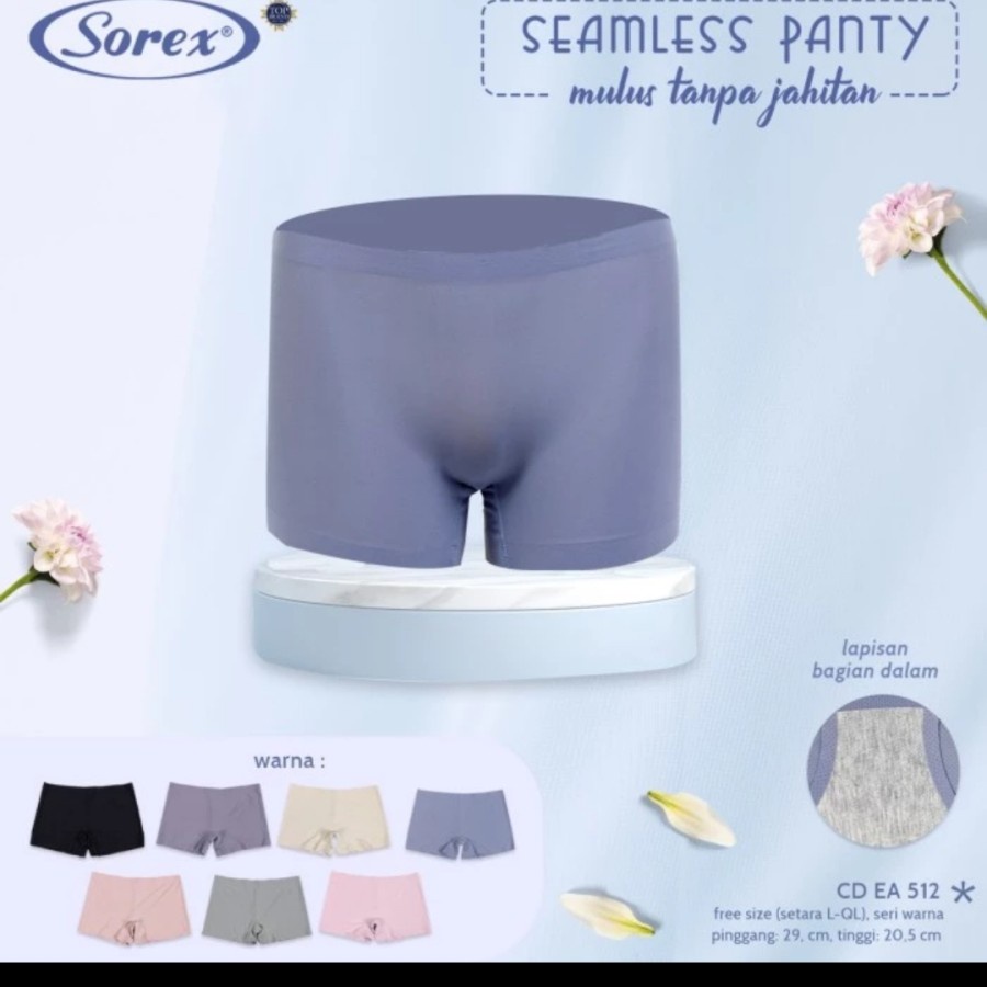 Detail cd celana dalam wanita boxer seamless sorex ea 513 pori pori 512 polos anti nyeplak