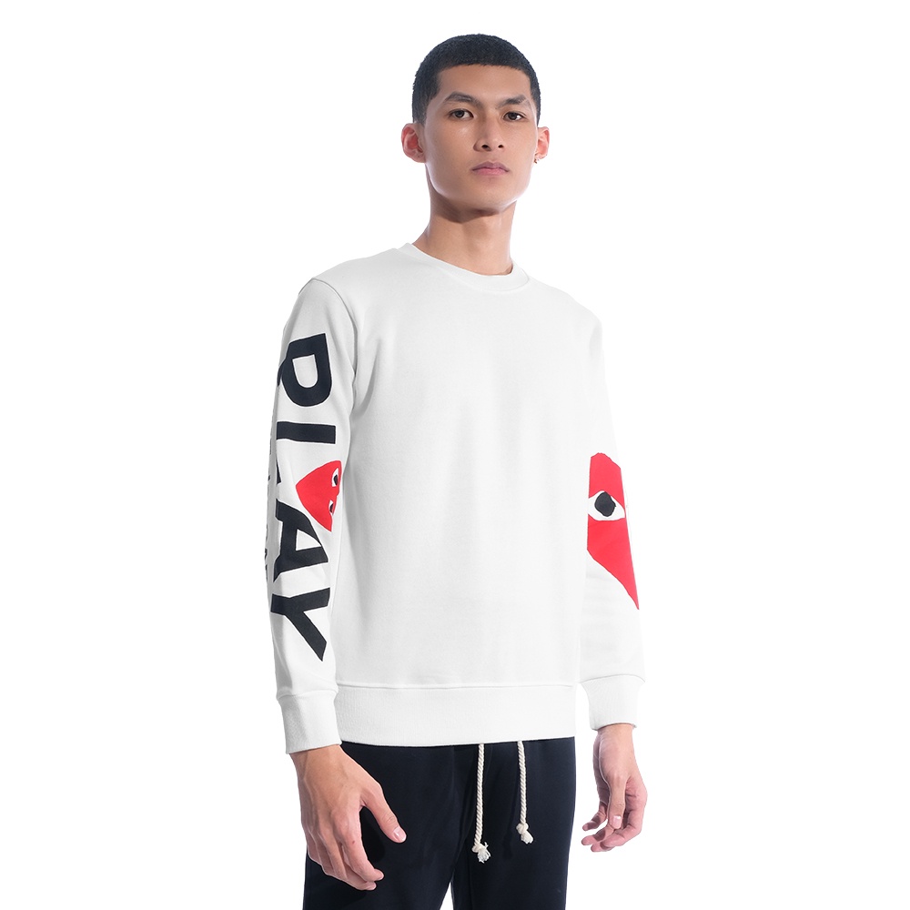 CDG Play Small Multi Hearts Printed Sleeve Sweatshirt WhiteCDG Play Small Multi Hearts Printed Sleeve Sweatshirt WhiteCDG Play Small Multi Hearts Printed Sleeve Sweatshirt White