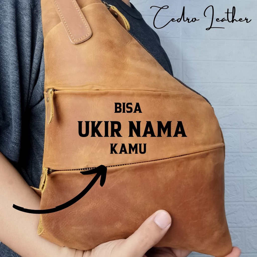 Detail CEDRO LEATHER Tas Kulit asli SLim Hazelnut Tipe RAMON
