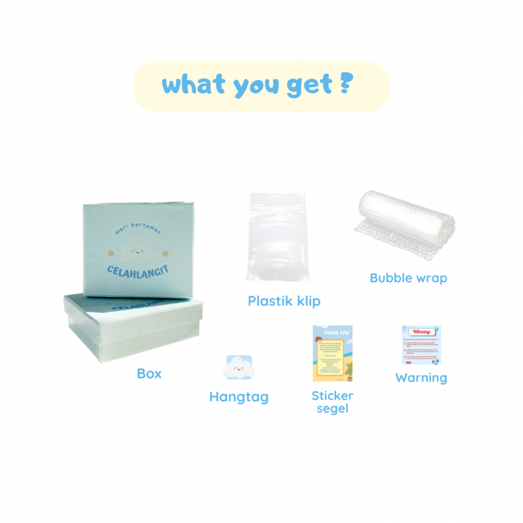 ** saat paket baru diterima, dimohon untuk membuat video unboxing saat segel belum rusak tanpa pause/jeda, sehingga jika ada kerusakan, kekurangan, atau ketidaksesuaiaan produk dengan deskripsi bisa di claim untuk retur dan di validasi melalui kelengkapan tersebut** **PEMBELIAN DIBAWAH 35.000 TIDAK MENDAPATKAN GANTUNGAN AWAN DAN THANKS CARD**