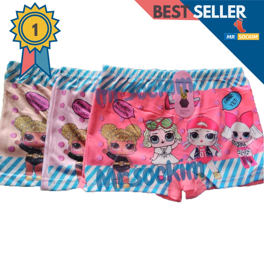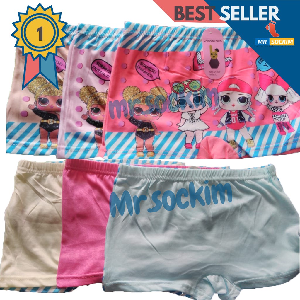 Celana Boxer Anak Perempuan Karakter Lucu Katun Stretch Daimaru | Satire (6 PCS seri warna)