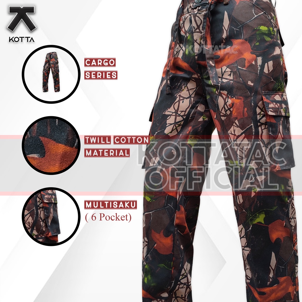 Detail CELANA CAMO RED PANJANG PRIA - CELANA PDL LORENG CAMO PERBAKIN - CELANA CARGO ARMY BERBURU - CELANA BERBURU PANJANG