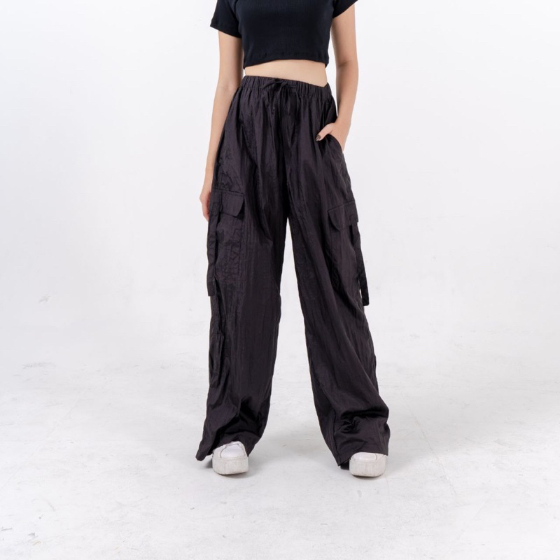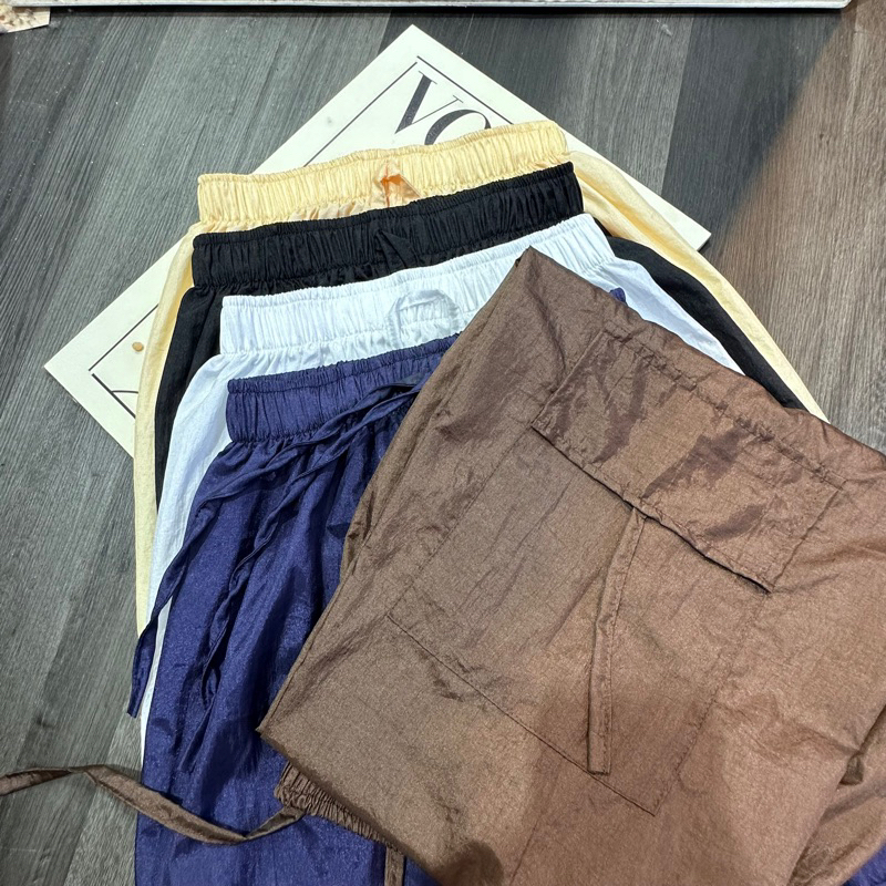 bahan parasut cringkel premium panjang 100 paha 70 kantong hnya kantong bawah kanan kiri pinggang full karet
