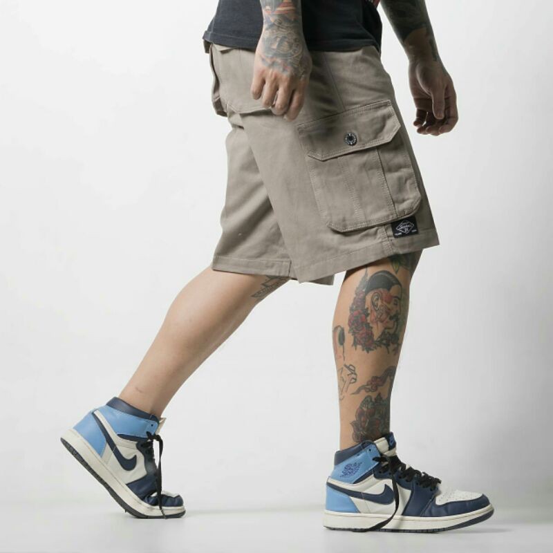 Detail Celana Cargo Pendek Sandwash Celana Gunung Pria Blue Sandwash