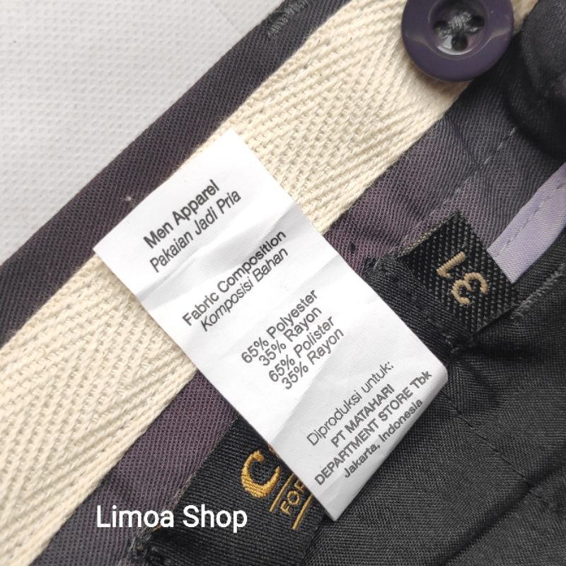 Celana Pria Chino Formal Branded Merk : COLE Warna : Abu Gelap Model : Slim Fit Bahan : Poliester 65 % Rayon 35 % Motif : Sesuai Gambar / Real Pict