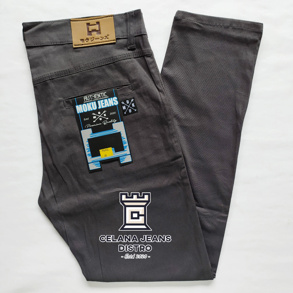 Celana Chinos Panjang Pria Abu Gelap Distro Merk Moku Size 28-33 Warna Hitam, Abu Gelap, Mocca & Cream