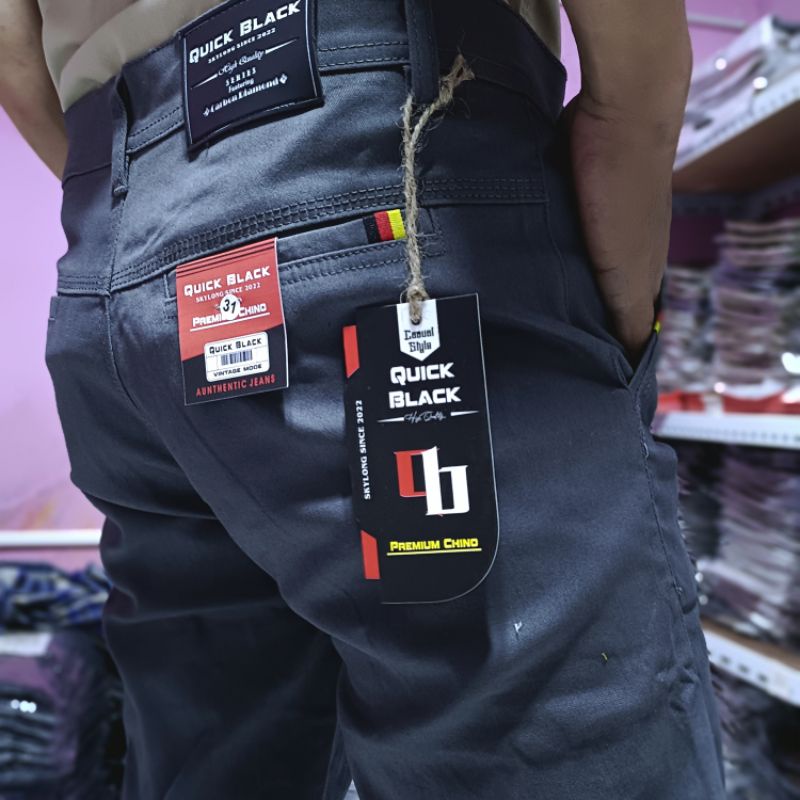 Detail Celana Chino Panjang Pria Chinos Jumbo Slimfit Premium Distro Quick Black