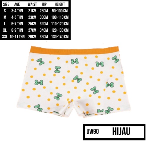 - keterangan celana dalam anak perempuan model boxer karakter kartun. Terbuat dari bahan yang halus dan elastis tidak akan menyebabkan ruam gatal pada kulit.