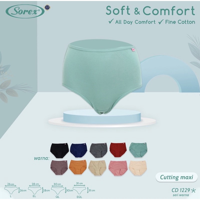 Detail Celana Dalam CD Wanita Basic Maxi Sorex 1229 Katun