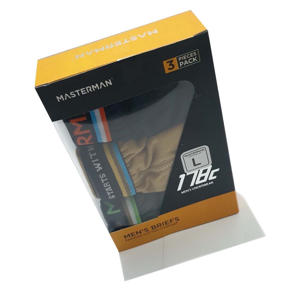 SPESIFIKASI PRODUK - Merk Masterman - Model Brief Segi Tiga Artikel CD 178C - Bahan TC Non Spandex - Sangat Nyaman Di Gunakan - Karet Pinggang Boxer ( Karet Luar ) - Detail Branch Mark - Anti Bacterial - Slip-On Style - Warna Random - 1 Box Isi 3 Pcs ( 3 In 1 ) - Tersedia Dalam Ukuran S.M.L.XL