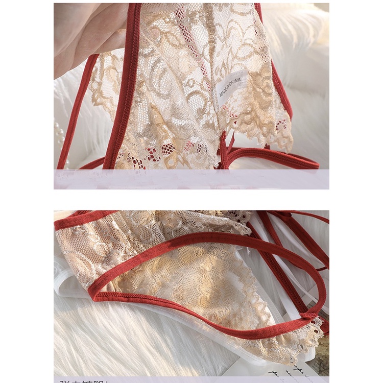 Detail Celana Dalam renda Sexy transparan Bunga-bunga Hollow G String C027