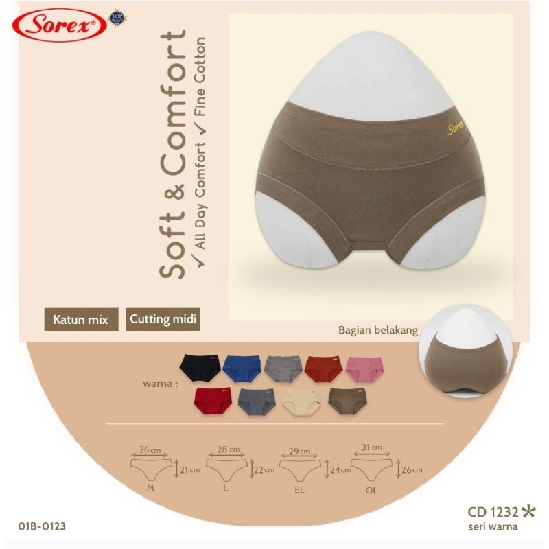 Pakaian dalam wanita merek sorex dengan no seri atau type 1232.Bahan sangat lembut sehingga nyaman dipakai.tersedia ukuran:
