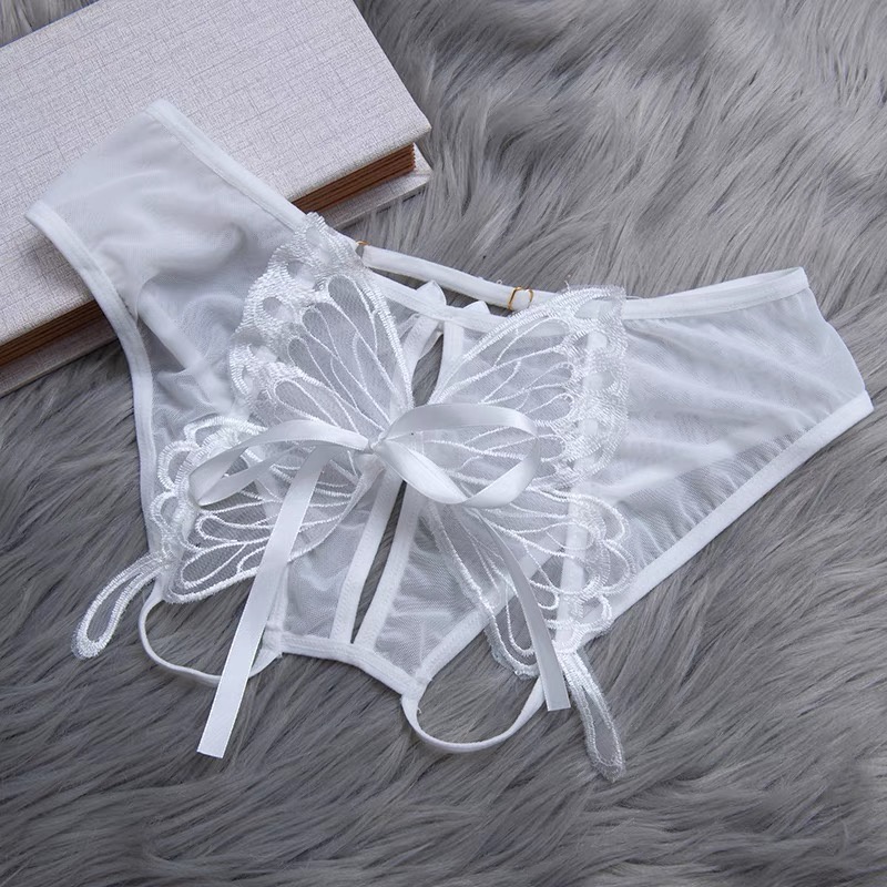 Detail Celana Dalam Wanita Open Crotch jumbo Bordir Kupu-kupu Mesh G String Transparan Sexy Lingerie C021