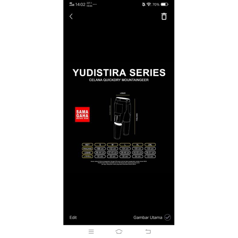 apalagi skrg lagi musim hujan celana ini dibekali dengan daya waterproof yang baik untuk intensitaa hujan sedang