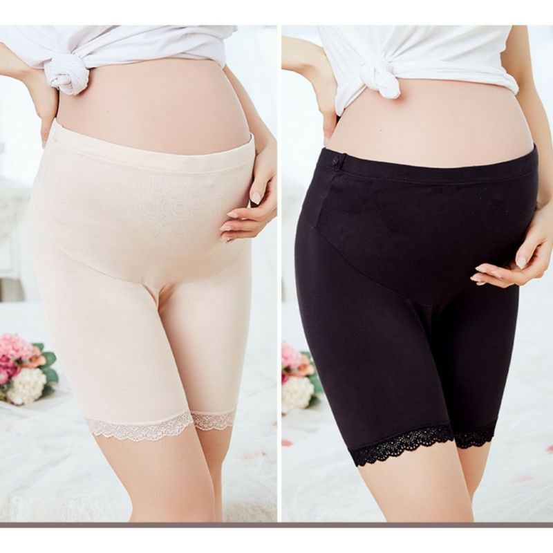 Celana pendek hamil dengan bahan kaos spandek terdapat karet pengatur pada perut (adjustable strap) sehingga dapat disesuaikan dengan perubahan ukuran perut ibu hamil. Ukuran All size , ukuran sebelum ditarik melar : Lebar Pinggang 37 cm. Lebar Panggul 42 cm. Lingkar paha 42 cm