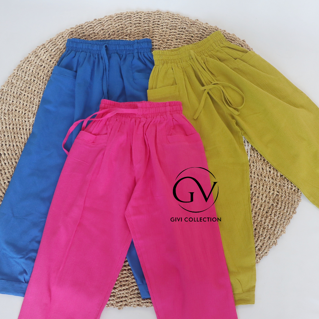 celena pants wanita model 7/8 bahan linen crinkle premium tebal tersedia ukuran standar dan jumbo pinggang full karet tebal dan serut tali