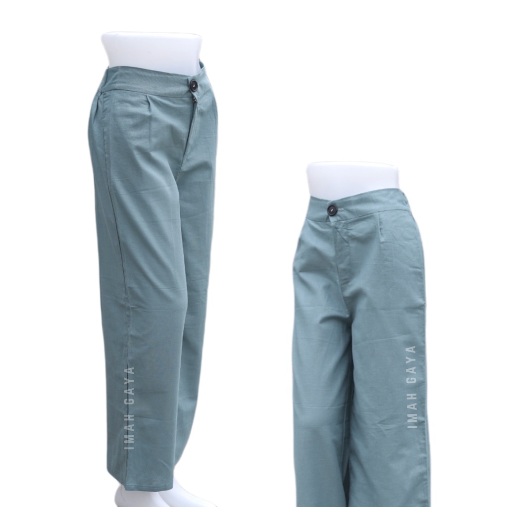 Detail Celana High Waist Wanita Dewasa Standar polos Linen Angel Premium High waist Kulot
