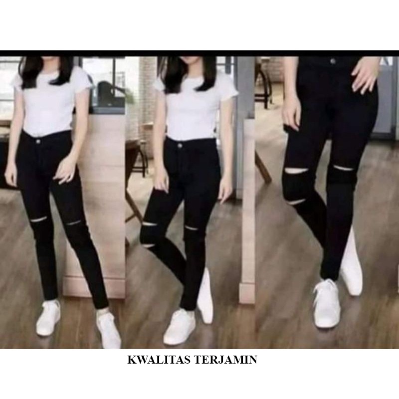 CELANA WANITA HW JEANS PANJANG SOBEK LUTUT MURAH TAPI KUALITAS BAGUS