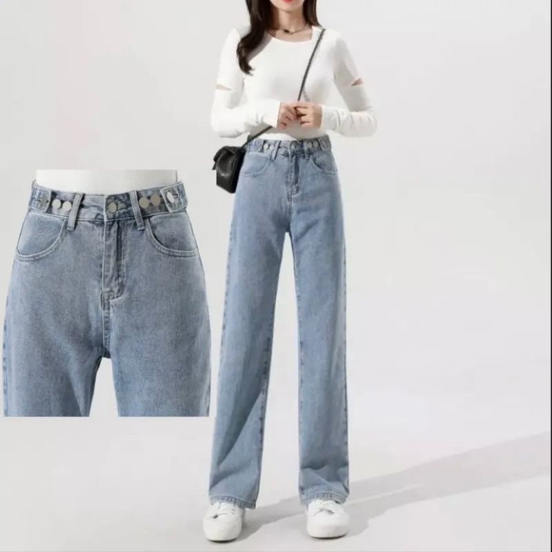 Detail Celana Highwaist Jeans Kulot Wanita Pinggang Kancing yang dapat di sesuaikan