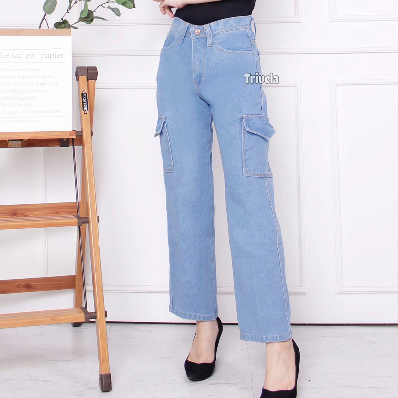 Pakaian Wanita > Denim > Celana Panjang Jeans > Celana Jeans Cargo Wanita / Celana Jeans Loose Boyfriend Cargo Pocket / Jecargo