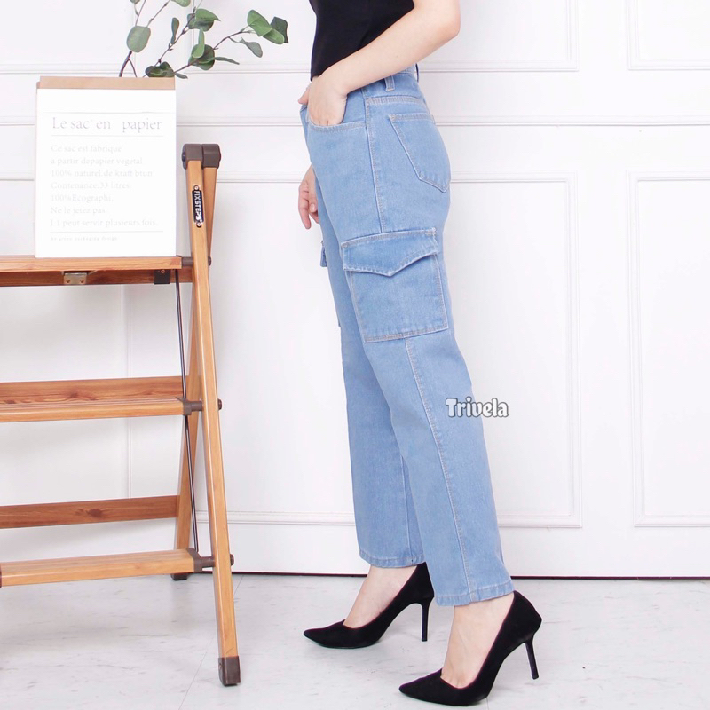 Celana Jeans Cargo Wanita / Celana Jeans Loose Boyfriend Cargo Pocket / Jecargo